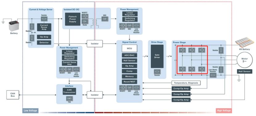 汽车的行驶能耗和电机的逆变和驱动有极大的关系,使用SiC模块可以一定程度上提升整体效率,降低能耗提升续航,并且SiC器件在高温的环境下也有不错的表现,对于常规Si器件有着很大优势。